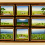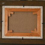 The oil painting shows a landscape with a large lake in the centre. On the shore there are trees with green leaves in the background and in the foreground there are leafless trees, some of which are already lying broken on the ground. The large lake flows through smaller lakes into the foreground of the painting and finally flows into a hole in the ground and disappears completely. The painting has a single model frame and is dated and signed on the front. On the back the painting is titled, dated and signed.