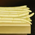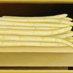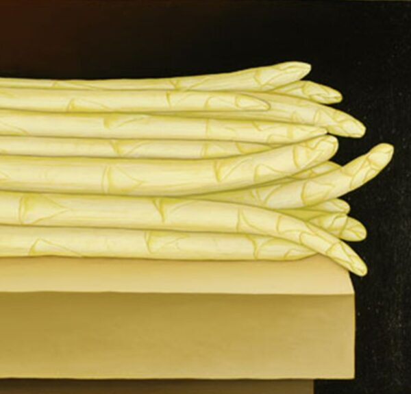 Dans cette nature morte, l’asperge a le rôle principal. Les pointes d’asperges reposent sur un bloc de pierre de couleur sable sur un fond brun-noir. Le fond simple met l’accent sur la représentation réaliste des 12 tiges d’asperges. Les asperges ont été peintes dans leur taille d’origine. La peinture a un cadre de modèle sur mesure.