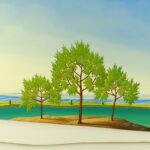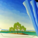 L’œil du spectateur saisit d’abord la toile déchirée et ensuite seulement le groupe d’arbres dans un paysage d’été. Jusqu’à neuf dimensions / toiles défilent les unes après les autres sur le bord droit de l’image. À chaque nouveau niveau d’image, une vue différente ou un nouveau motif pourrait s’ouvrir au spectateur. Le tableau a un cadre modèle sur mesure et est titré, daté et signé au dos.