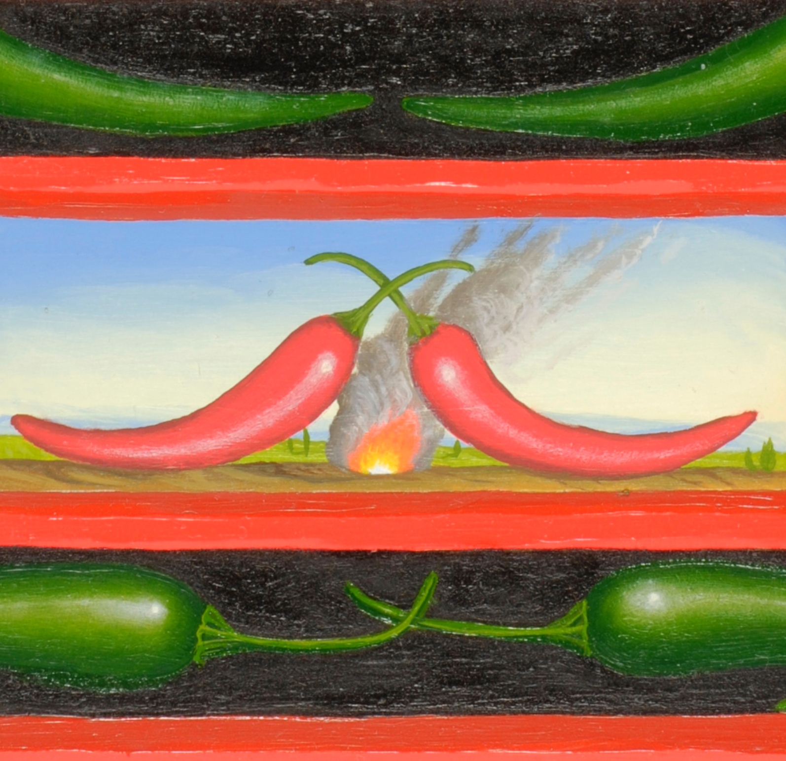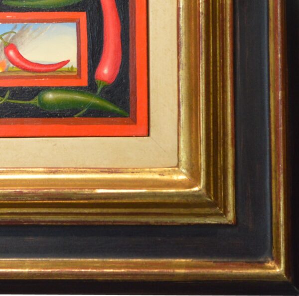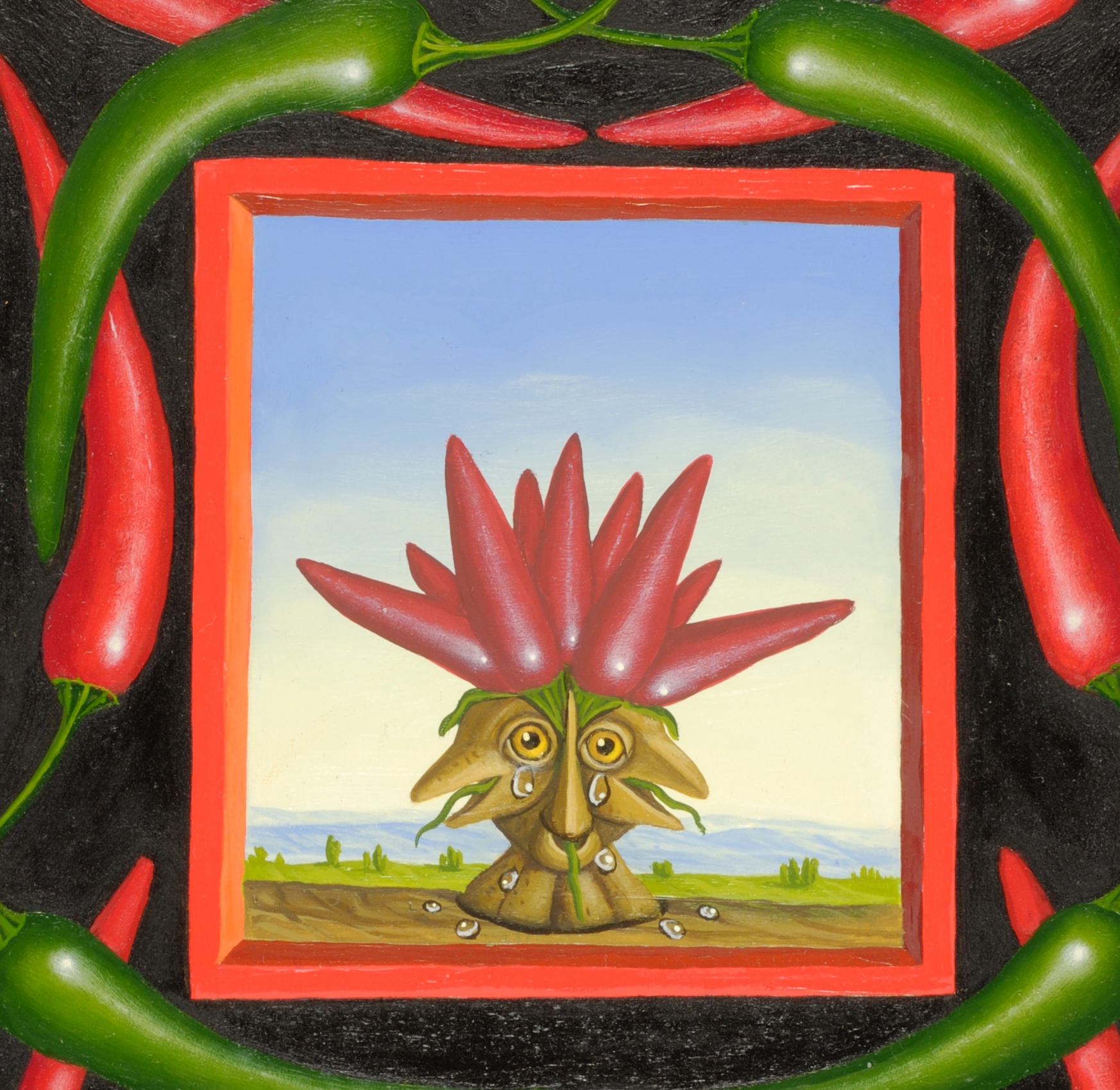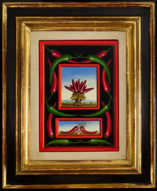 Das Ölgemälde „Der Chili-Geist“ besteht eigentlich aus zwei Gemälden im Gemälde. Im Zentrum des Bildes steht ein geheimnisvoller Kopf mit drei Nasen und Münder. Die „Haare“ werden durch Chili-Schoten dargestellt. Unter dem Gemälde befinden sich zwei Chilischoten zwischen denen ein Freuer lodert. Um die zwei kleinen Gemälde ranken sich rote und grüne Chilischoten. Das Gemälde hat einen einzelgefertigten Modellrahmen und ist auf der Rückseite betitelt, datiert und signiert.