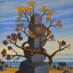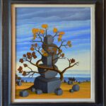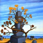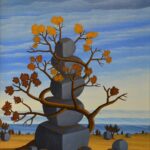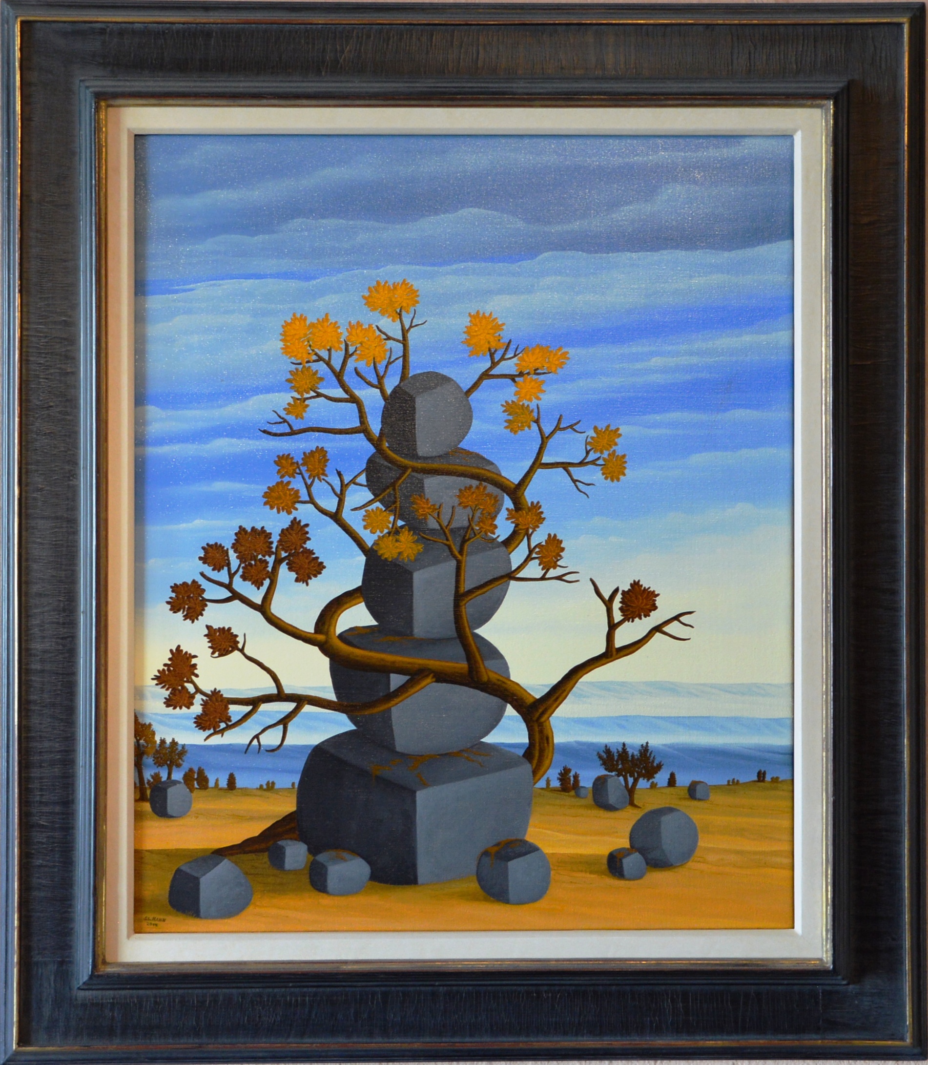 Im Mittelpunkt des Ölgemäldes steht eine ungleiche, tragische Liebe zwischen einem Baum und aufgetürmten Steinen. Der Baum mit seinen Ästen wächst spiralförmig um die aufeinanderliegenden Steine herum. Dadurch stützt der Baum die Steine und hält das wacklige Gebilde in seiner Form. Im symbiotischer Weise geben sie sich wechselseitig Halt – der Eine (Baum) kann nicht ohne den Anderen (Steinturm) existieren. Allerdings werden die Wurzeln und Äste die Steine immer weiter bedrängen, eventuell auch sprengen. Am Fusse des Steinturms liegen bereits erste Steine, die in der tragischen Liaison keinen Halt gefunden haben. Das Gemälde verfügt über einen einzelgefertigten Modellrahmen.