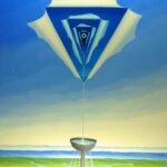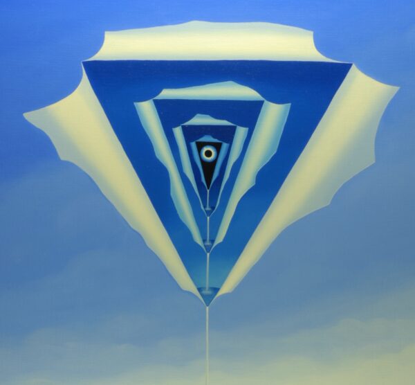 Im Mittelpunkt des Bildes steht das lebenspendende Wasser, welches aus einer überirdischen Quelle in einen Wasserkelch fliesst. Das ist die erste Darstellung der Wirklichkeit. Die überirdische Quelle fliesst durch Räume bzw. Wirklichkeiten, die wir mit unseren Sinnen zu erfassen glauben. Der Betrachter des Bildes wird mit der Frage zurückgelassen „Existiert diese Wirklichkeit tatsächlich und auf welche Weise?“ Das Gemälde hat einen einzelgefertigten Modellrahmen und ist auf der Vorder- und Rückseite datiert und signiert.