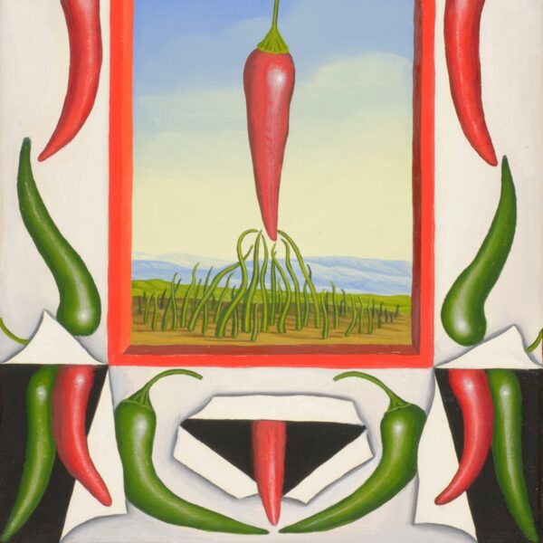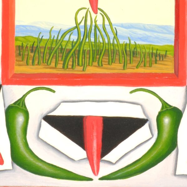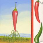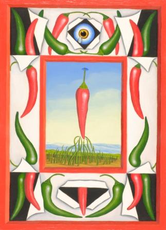 Im Mittelpunkt des Bildes steht eine rote Chilischote die offensichtlich aus dem Himmel kommt. Sehnsüchtig wird die Chilischote von grünen Sprossen auf der Erde erwartet. Über der Chilischote schwebt ein „göttliches Auge“ mit einer Träne. Das Auge scheint den Prozess der Schöpfung zu beobachten. Das Bild wird eingerahmt von roten und grünen Chilischoten auf weißen und schwarzen Hintergrund. Das Gemälde verfügt über einen einzelgefertigten Modellrahmen und ist auf der Rückseite betitelt, datiert und signiert.